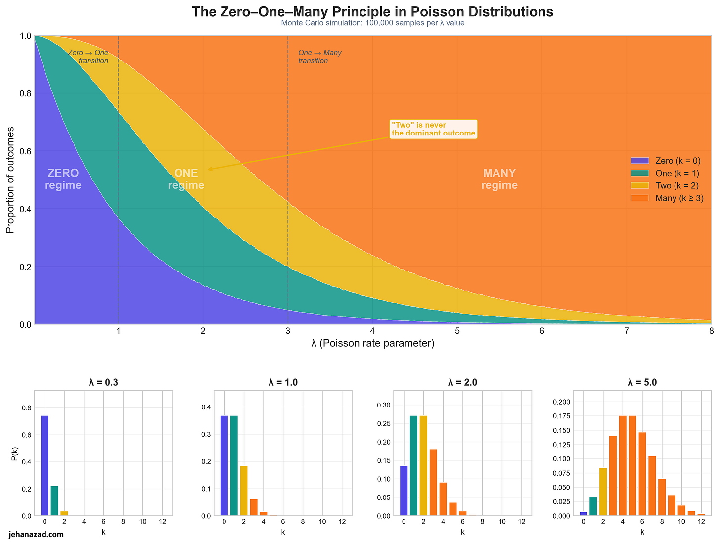 In software engineering, the zero, one, infinity (ZOI) rule means that you should allow zero instances, one instance, or any number of instances of something. For example, this post is allowed to have zero embedded tables (Substack lacks this feature), one subtitle, and an infinite number of likes (hint, hint).